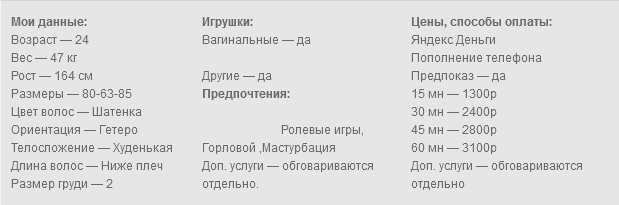 Готова исполнить твои самые сокровенные желания по скайпу. Делаю фото и видео. Обожаю играть в разные игры. Могу быть податливой Сделаю всё, чтобы ты кончил. Работаю с лицом, есть качественная камера и профессиональное освещение.