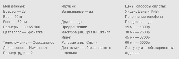 Привет, мой милый, буду рада пошалить с тобой в вирте, обожаю когда со мной играются, дразнят и доводят до оргазма, специально для тебя могу сквиртануть. Если ты поможешь мне кончить, то в ответ я дам тебе незабываемые ощущения и подарю тебе самый яркий оргазм в твоей жизни. Хочу, чтобы ты кончал только для меня. Я готова покорно служить тебе и выполнять твои команды, прихоти и фетиши, буду твоей самой верной. Всё зависит только от тебя и от твоих желаний и фетишей. Ролевые игры, чулки и т.д. Пиши, мы всё обсудим. Работаю с лицом.