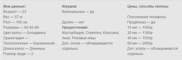 Привет мои дорогие мальчики. Я беременная и при этом страстная и очень пошлая блондинка которая с удовольствием проведет с вами время и предоставит вам свое тело и внимание. Очень люблю играть с своей попкой, ласкать твердый клитор, нежно трахать свою упругую киску. Готова вам предложить переписку без комплексов и табу, фото и видео под заказ и конечно живое онлайн общение по вебкамере где мы узнаем друг друга гораздо лучше. Я готова станцевать для тебя стриптизер который перейдет в нежные ласки и конечно закончится совместным оргазмом. Я практически все время онлайн, так как хочу доставлять тебе удовольствие в любое время. Я одна из тех немногих моделей которые не симулируют оргазм, так что вирт со мной ты обязательно запомнишь на долго. Пиши мне быстрее, и пообщаемся с тобой даже на самые пошлые темы