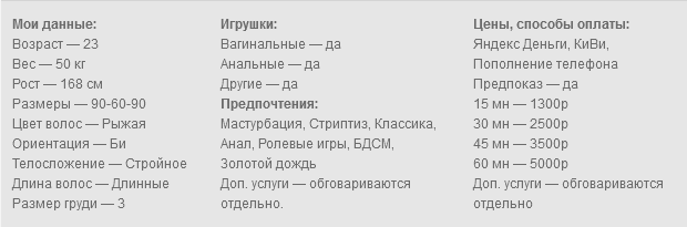 Приветик замечательным парням. Я Алиса, очень горячая и страстная Лисичка, которая с удовольствием проведет с тобой время по видеозвоночку и покажет все свое тело во всей его красе. Обожаю играть со своими узенькими дырочками, трахать свою возбужденную киску. Нравятся эксперементы различные по типу ролевых игр, фото и видео под заказ сделаю на любое желание и вкус. Могу разговаривать на любые темы и буду отличной собеседницей с которой не соскучишься и будешь возвращаться в мир соблазна и похоти ко мне. Так же я красиво танцую стриптиз и платно перевожу все в ласки с оргазмом, которых может быть несколько, я не симулирую и люблю кончать по несколько раз. Можешь писать мне в любое время, я точно отвечу. Буду рада доставить тебе приятные ощущения, так как ловлю от этого кайф. Напиши мне и мы обсудим все твои желания, которые я с большим удовольствием исполню и подарю бурю красочных незабываемых эмоций