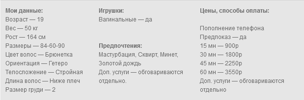 Привет, котик. Знаю, что ты ищешь модель, готовую выполнить все твои сокровенные желания. Не зря ты попал именно ко мне. Мне всего лишь девятнадцать, но это не значит, что я неопытна. Очень люблю заниматься виртом, показывать свое молодое тело, от которого ты возбудишься ещё сильнее. Благодаря высокому разрешению у моей камеры — при видеозвонке ты получишь настоящее наслаждение. Могу станцевать стриптиз, полностью разденусь и покажу свою мокрую киску. Сладко помастурбирую и сильно намокну. По твоему желанию и за дополнительную плату могу записать голосовое, переписываться с тобой на самые грязные темы, присылать фото и видео на заказ по твоему сценарию. Люблю комментировать свои действия и общаться во время процесса. У меня милый и очень возбуждающий голосок. Показываюсь без лица, для удобства надеваю маску, в которой видно глаза и сладкие губки.