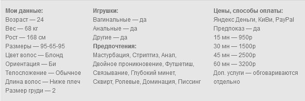«Владей своими страстями — или они овладеют тобою» . Наши сексуальные желания-наши слабости. Но не стоит их боятся, а принимать их как данность. Я та, которая откроет и воплотит все твои потаенные желания и фантазии (даже самые неприличные). Которая раскрепостит тебя, которая совратит твоё тело и разум, даст тебе то, что ты хочешь больше всего на свете и сделает тебя счастливым. 3 причины написать мне : 1. Я молодая и сексуальная. 2. Красивая и весёлая 3. Если ты до сих пор не написал мне, читай первые два пункта.