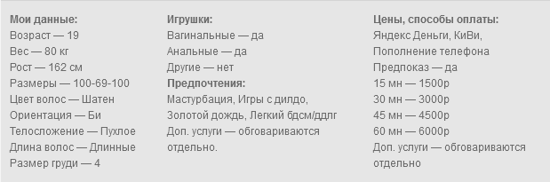 Хочешь расслабиться но не нашел идеальную девочку в реальности? В таком случае есть такие виртуальные модели как я. Мне всего 19 и у меня пышные формы, большая грудь и попа как орех, исполню твои любые фантазии, душевно пообщаюсь с тобой по связи и поддержу тебя в трудную минуту если мы поладим. У меня есть небольшая коллекция игрушек которую я с радостью пополняю время от времени чтобы ты мог экспериментировать со мной и мы вместе получали удовольствие от наших игр. А если ты хочешь быть строгим папочкой могу стать твоей капризной малышкой и наоборот, наказать тебя за твои проступки и забрать все твои кровные себе. А для любителей ножек с радостью потыкаю ступнями прямо в камеру что бы ты смог ими насладиться в полной мере. Целую, солнце.
