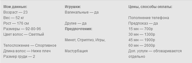 Всем привет, меня зовут Катенька. У меня современный и стильный интерьер, высококачественное освещение и конечно хорошая профессиональная вебкамера. Все что только надо что бы доставить тебе наивысшие удовольствие. Если ты хочешь получить действительно качественный вирт, то тебе точно ко мне. Для тебя я могу сыграть роль: горничной, студентки, учительницы, мамочку, мачеху, начальницу, любимую тетю, снегурочку, очень люблю роль сексвайф и куколд. Я действительно получаю удовольствие от своей работы, но работаю только за плату. Жду вас каждый день, в основном работаю с обеда и до утра. Заранее прошу вас, не звоните мне без предупреждения. Звонки только после оплаты. Если вы хотите развлечься со мной по вебкамере пожалуйста напишите мне, укажите что вы хотите увидеть и услышать. Я как только смогу обязательно вам подробно отвечу и укажу стоимость.