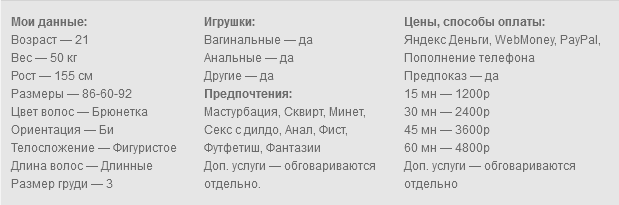Очень общительная, сексуальная и красивая модель с удовольствием проведет время по видеосвязи в компании с приятными мужчинами. Пишите мне в любой удобный для вес мессенджер, я всегда рада новым знакомствам и общению. С удовольствием ублажу вас по видеосвязи, воплощу все ваши фантазии и даже самые сокровенные и развратные. Всегда с интересом выслушаю ваши пожелания к нашим шалостям и буду стараться всеми силами выполнить их. В сексе очень люблю и получаю удовольствие от ролевых игр, футфетиша, моя попка все в поиске новых приключений. Работаю с лицом. Делаю вирт по скайпу или видеозвонку в телеграмме. Муррррр котики я очень часто в сети и ты можешь заказать у меня не только виртик но и фото мои на заказ или готовые видео очень много. Переписка с фото или звонки. Пиши мне и мы договоримся о самых сексуальных твоих фантазиях. Есть чулки, каблуки, платья, боди. Lovense Lush.