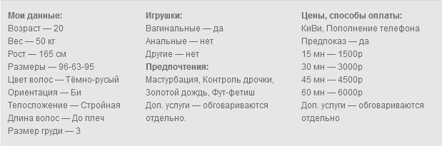 От ласковой кошечки до надменной Госпожи всего один шаг — твоё желание. Я — та, кто реально кайфует от виртуальных шалостей по вебкамере. Если ты хочешь услышать мой голос и стоны, моя личка открыта с 9 до 16 по мск. Если ты будешь непротив ласкам без звука, буду ждать с 19 до 24 по мск. Со мной ты можешь не только получить удовольствие от ярких оргазмов, но и пообщаться на интересующие тебя темы, видеозвоночек удовлетворит все твои желания. Я не стесняюсь показывать своё личико, ты можешь наслаждаться мной полностью. Со мной тебя ждут незабываемые впечатления, бурные оргазмы и конечно отлично проведенное время. Если хочешь можем с тобой просто поболтать на любую интересующую тебя тему или обсудить твои сексуальные фантазии.