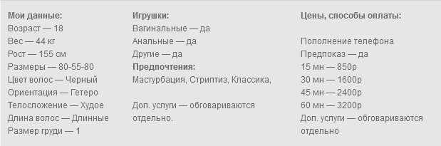 Молоденькая девушка восточной внешности, очень привлекательная с хорошим телом. Со мной вы можете пообщаться на любые темы которые вас интересуют, открыться мне и высказать все свои потаенные фантазии. Я очень старательная и прислушиваюсь к пожеланием своих клиентов. А так же люблю не только выполнять все ваши желания, а смотреть за вашей реакцией на все происходящие. Меня это очень сильно возбуждает и дает расскрыться и насладится вполной мере. Для выполнения всех ваших прихотей и желаний в моем арсенале есть много игрушек и нет запретов на различные фетиши. Зайди ко мне на вирт и увидишь мою сочную фигуру, уже мокрые дырочки, которые готовы исполнять любые твои желания. Ведь я умею абсолютно всё и в разных позах.