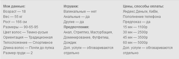 Готова исполнить твои самые сокровенные желания по скайпу. Делаю фото и видео. Обожаю играть в разные игры. Могу быть податливой или стать твоей госпожой. Сделаю всё, чтобы ты кончил. Работаю с лицом, есть качественная камера и профессиональное освещение.