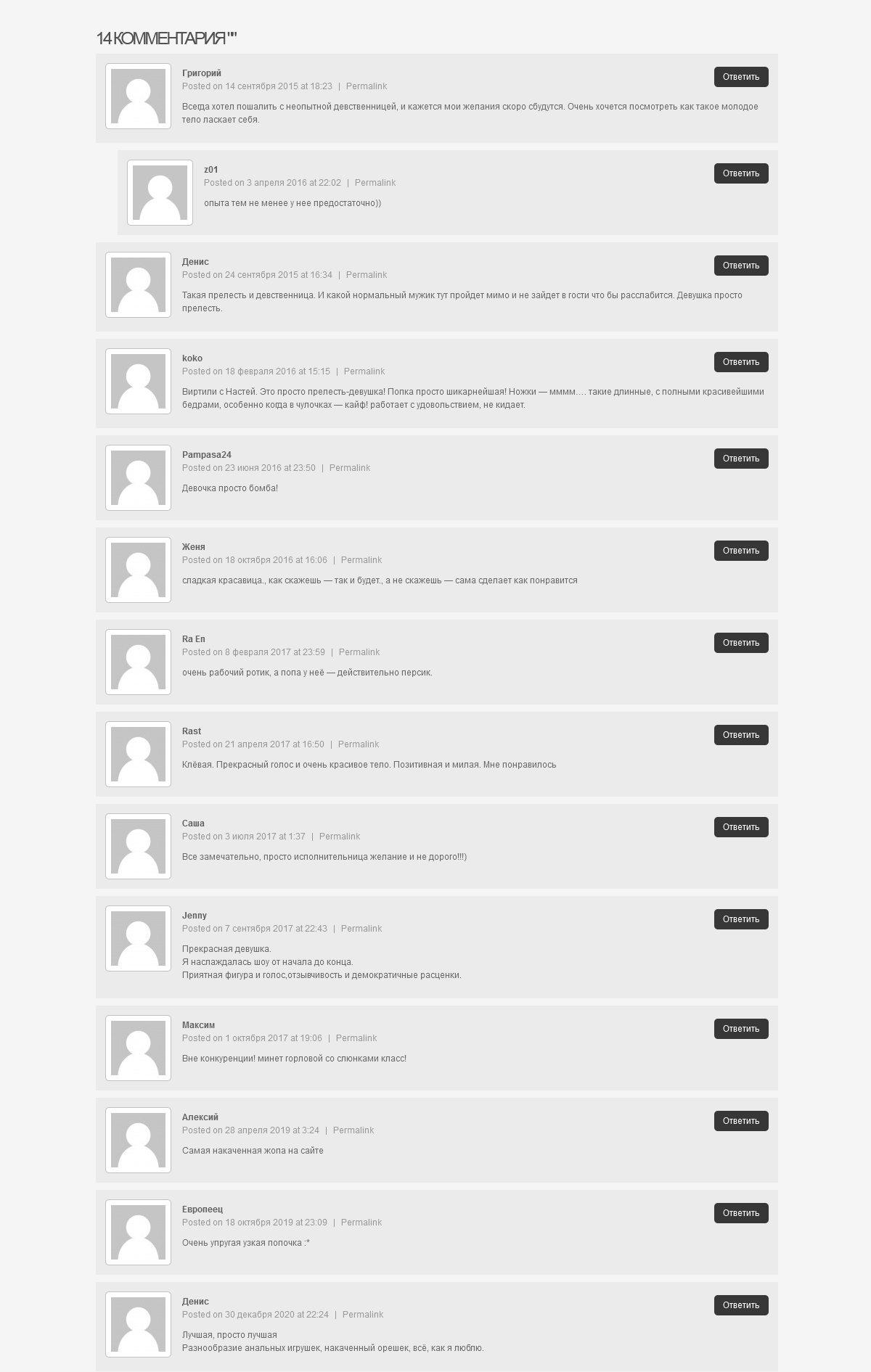 Знаете почему мой ник Персик? Потому что я просто обожаю персики. А еще я очень люблю заниматься виртом, при этом показывать свое молодое и возбуждающее тело которое не оставит вас равнодушным. А еще мне только девятнадцать лет. Благодаря моей качественной камере в вирте будет все хорошо видно и вы сможете наслаждаться каждой частью моего тела. Для вас я станцую возбуждающий стриптиз и полностью разденусь, помастурбирую свою кисочку и поиграю пальчиком с своей попкой которая очень похожая на свежей персик. По вашему желанию и за дополнительную плату могу сделать фото и видео на заказ по вашему сценарию, а дополнительные услуги можем обговорить отдельно во время вирта. У меня всегда есть хороший звук и я люблю общаться в процессе и описывать свои ощущения. Показываюсь исключительно без лица, для удобства одеваю красивую маску. Могу для вас по желанию поматерится грубым матом, поунижать и сделать золотой дождь.