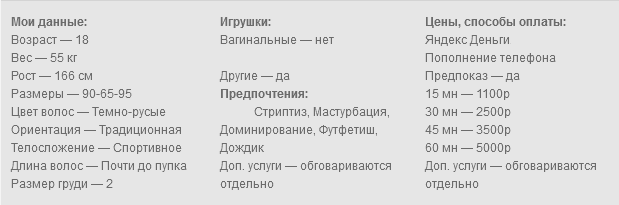 Готова исполнить твои самые сокровенные желания по скайпу. Делаю фото и видео. Обожаю играть в разные игры. Могу быть податливой или стать твоей госпожой. Сделаю всё, чтобы ты кончил. Работаю с лицом, есть качественная камера и профессиональное освещение.