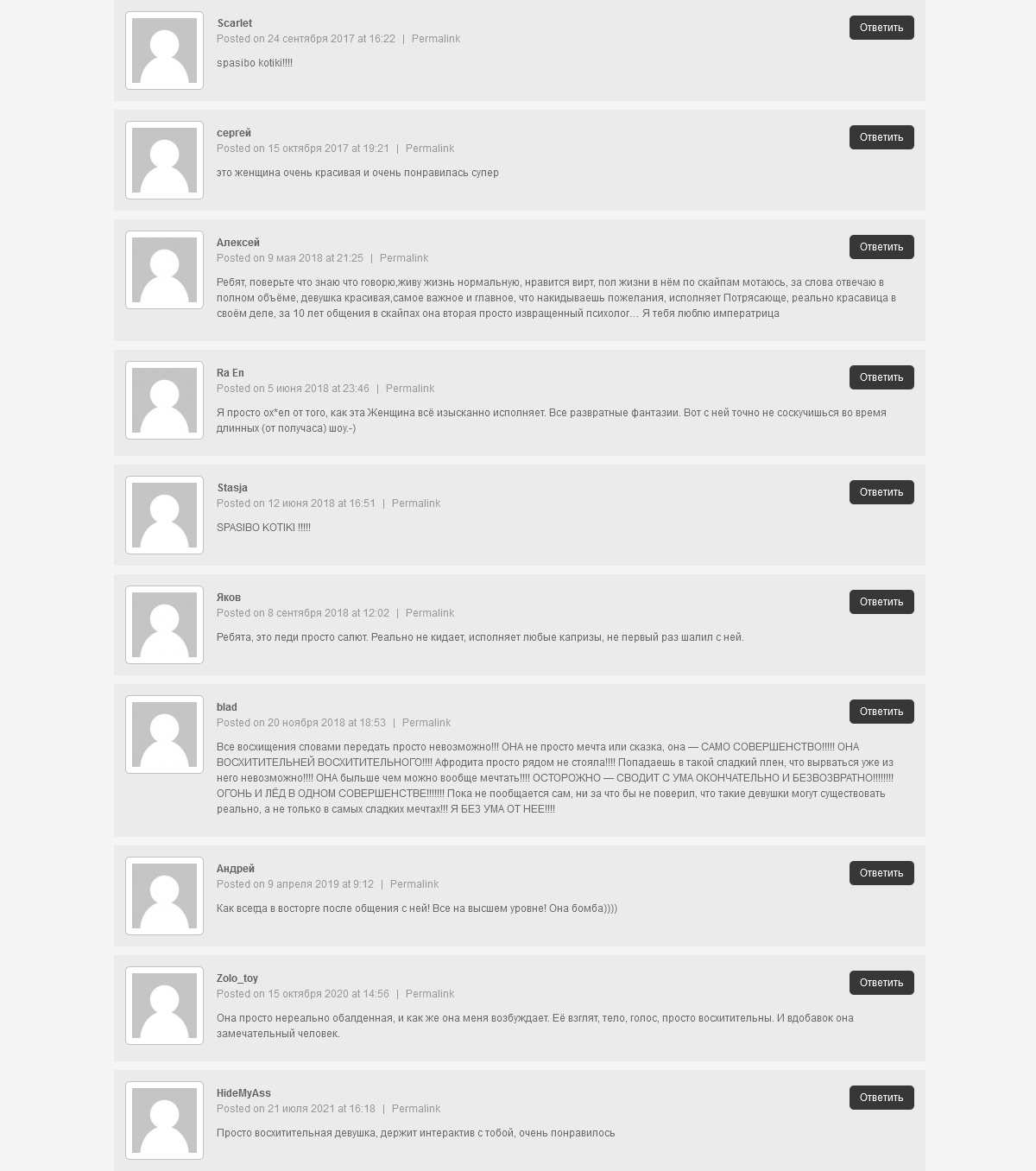 В моем шоу вас ждут всевозможные игры с разными игрушками, глубокий минет, анал, двойное проникновение, фистинг, золотой дождик и конечно всевозможные ваши пожелания которые с большим удовольствием выслушаю и постараюсь максимально осуществить их через telegram или любой другой мессенджер по веб камере.