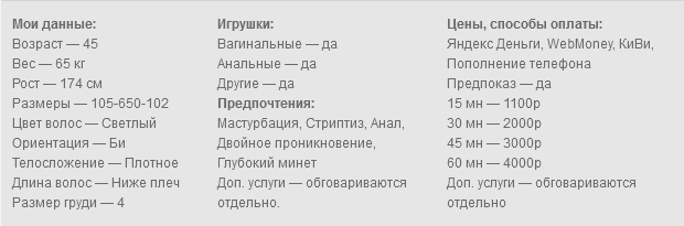 Привет всем. Я Татьяна взрослая жрица любви и вирт секса. У меня большие сиси и большая секси попка для виртика по камере самое оно. Люблю себя ласкать на камеру и не стесняюсь этого. Люблю смотреть на мальчиков и взрослых мужчин которые кончают от моих ласк в вирт сексе. Вирт секс для меня это хобби и работа. Поэтому я готова радовать вас с желанием и страстью ведь я ни капельки не принуждаю себя а все делаю с превеликим наслаждением. Для вирт секс сеанса я применяю супер качественную Камеру Logitech HDPro C930