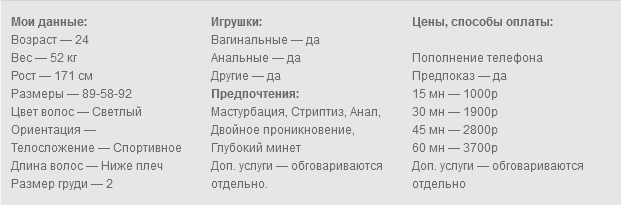 Готова исполнить твои самые сокровенные желания по скайпу. Делаю фото и видео. Обожаю играть в разные игры. Могу быть податливой или стать твоей госпожой. Сделаю всё, чтобы ты кончил. Работаю с лицом, есть качественная камера и профессиональное освещение.
