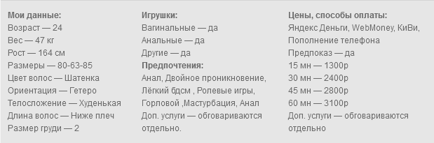 Готова исполнить твои самые сокровенные желания по скайпу. Делаю фото и видео. Обожаю играть в разные игры. Могу быть податливой или стать твоей госпожой. Сделаю всё, чтобы ты кончил. Работаю с лицом, есть качественная камера и профессиональное освещение.