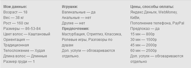 Привет, меня зовут Кэти, мне 18 лет. Я миниатюрная девушка, но с характером и люблю добиваться своих целей. Сейчас я учусь в университете и мое основное направление английский язык, также я скоро начну изучать китайский. Я долгое время занималась фигурным катанием и танцами, благодаря этому веду сейчас достаточно здоровый образ жизни, так как спорт стал основной ее частью. Однако, я курю хахах. Также я увлекаюсь играми и люблю ночью поиграть в приставку, мне нравятся FarCry, Tomb Raider и многие другие игры. Из фильмов я предпочитаю ужасы и комедии, мне нравится проводить время с кружечкой кофе, сидя на балконе и смотря какой-нибудь фильм такой тематики. Я люблю общаться на различные темы и умею слушать,поэтому думаю что нам с тобой точно не будет скучно вместе.