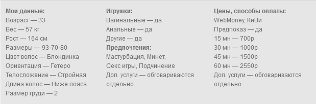 Горячая и страстная, похотливая и скромная, я могу быть кем угодно, в зависимости от настроения, У меня есть гены потомков Чингисхана, похотливая и скромная, я могу быть кем угодно, в зависимости от настроения, познакомься со мной, и твоя жизнь никогда не будет прежней, Я украду твою мысли… Я пробужу твои тайные желания, я жрица храма похоти и порока, иногда игривая и веселая девушка, иногда грязная и развратная, узнай, кто я на самом деле.