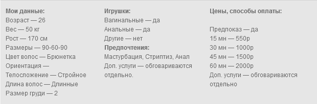 Могу предложить вам: сладчайшая попка, футфетиш, ролевые игры и т.д.