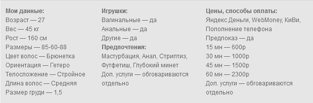 Приветик мальчики. Шалю на камеру продаю фото видео все выгодно и честно. Приглашаю вас ко мне н огонек. Я люблю поиграть с игрушками, анал, двойное проникновение, а также горловой минет c игрушкой, крупные планы, разные позы, оргазм. футфетиш, оближу и пососу пальчики, оближу ступни. Всегда рада новым знакомствам жду скучаю целую.