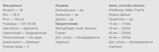 В моем шоу вас ждут всевозможные игры с разными игрушками, глубокий минет, анал, двойное проникновение, фистинг, золотой дождик и конечно всевозможные ваши пожелания которые с большим удовольствием выслушаю и постараюсь максимально осуществить их через telegram или любой другой мессенджер по веб камере.