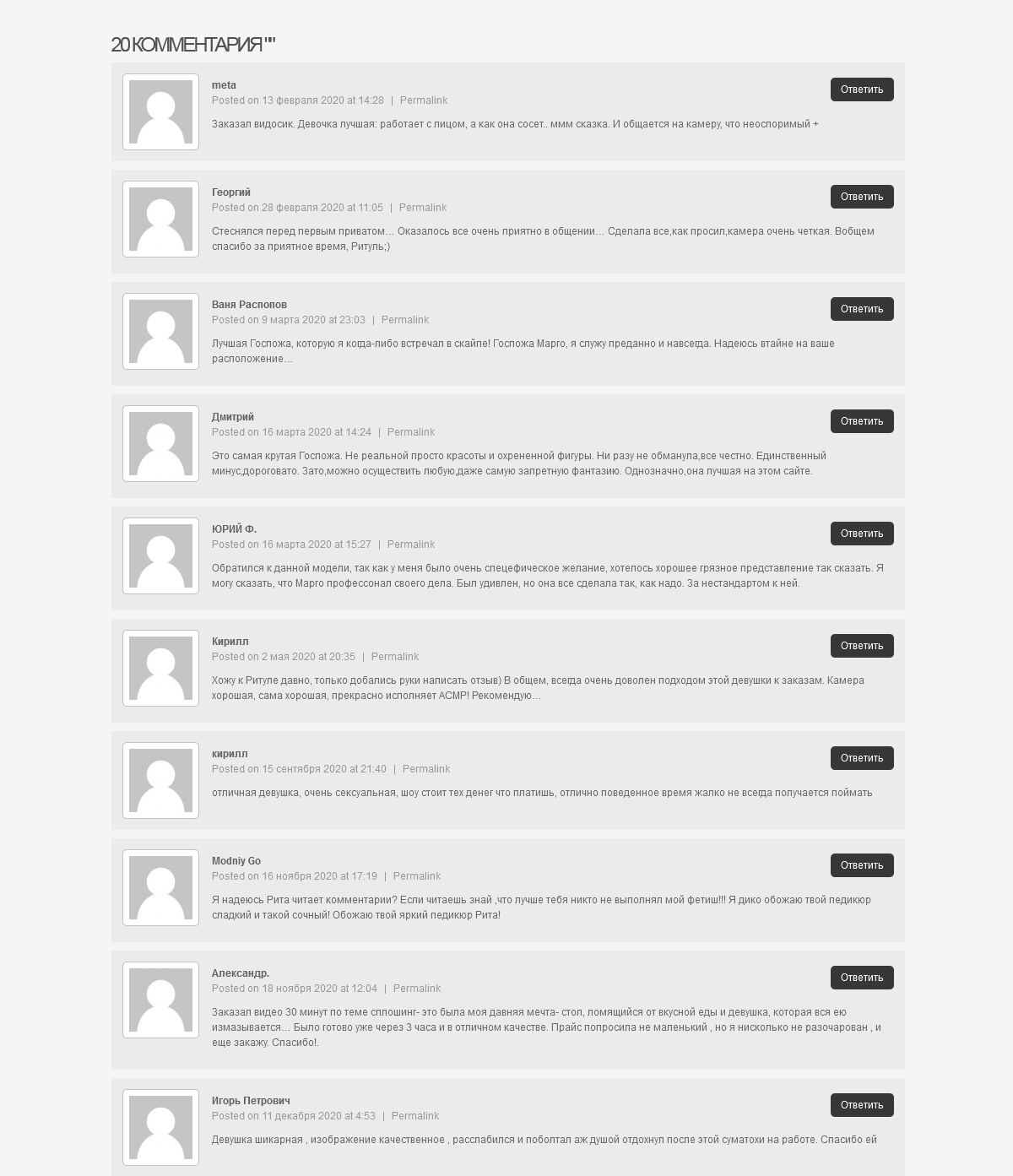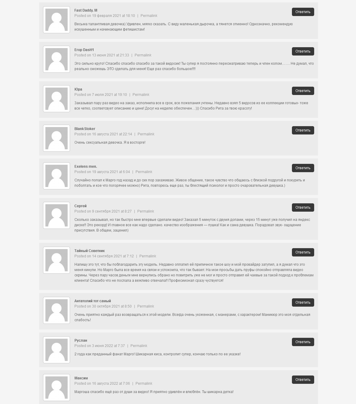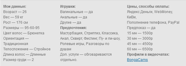 Привет, я- Ритуля. Люблю исполнять всякое от нежностей до жести. Заказы рассматриваются индивидуально — без табу. Работаю с лицом. Камера: высококлассная веб-камера формата 4K Logitech Brio. Микрофон: Blue Yeti. Освещение: профессиональное.